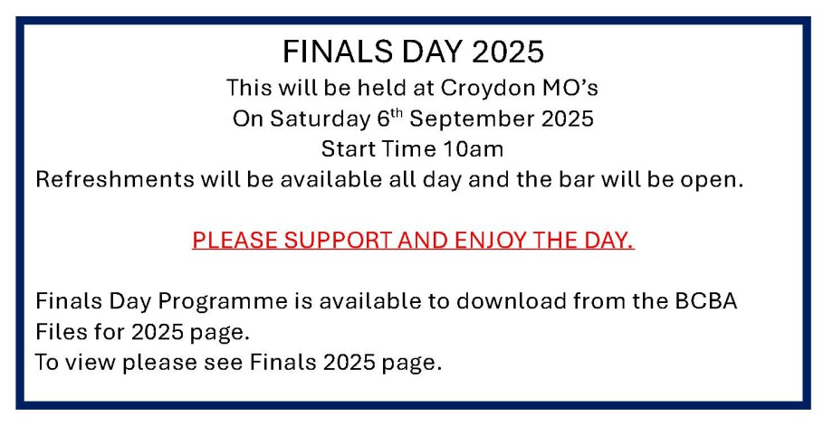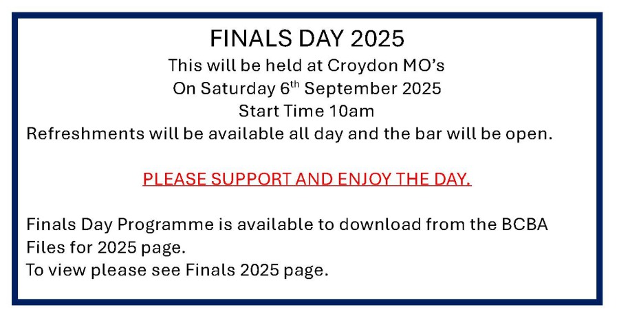 The B.C.B.A. is an Association of 16 member clubs within the Borough of Croydon, Surrey (U.K.)