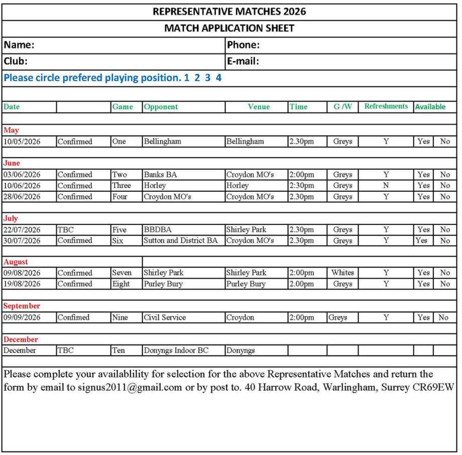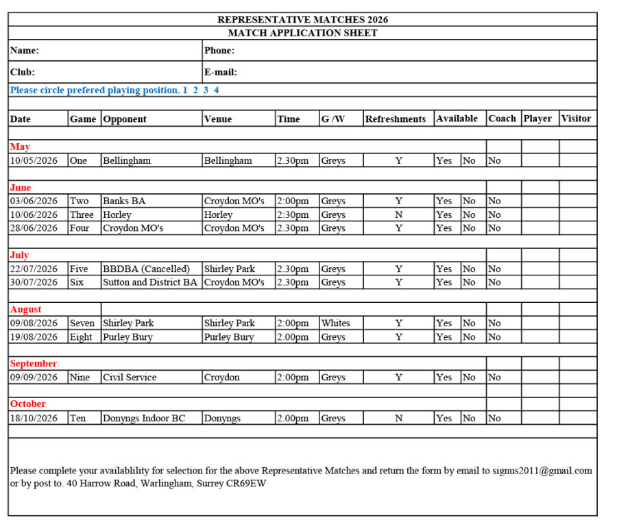 Representative Match Sheet 2026